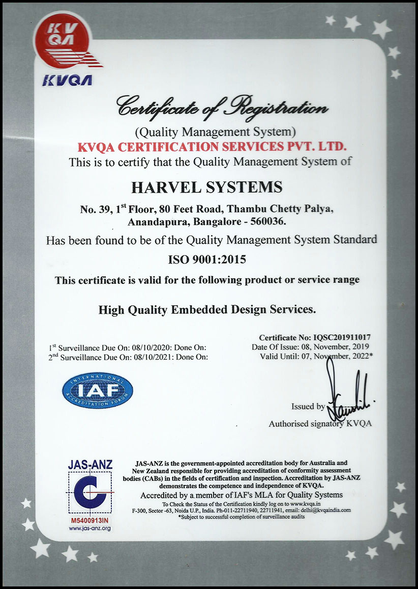 HARVEL Systems is an ISO 9001:2015 certified Technology services organization focused in Embedded Hardware and Software Turnkey Design Services. Since its inception, We specialize in providing Integrated solution for developing Innovative products or systems in the areas of Industrial automation, Medical and Embedded Computing application domains.